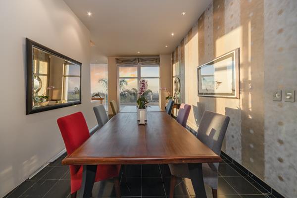 The above opens out seamlessly, through Aliminium glass, cavity stackers onto your top-shelf, covered, entertainment patio with built-in braai and wet bar flowing overlooking your heated swimming pool and garden.