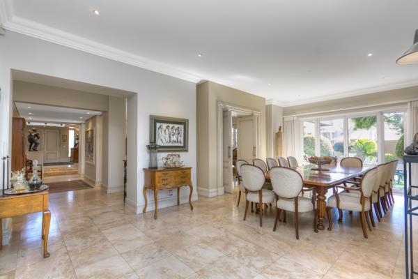 The ding room is centrally positioned, perfect for hosting gatherings, with easy access to the gourmet kitchen. The kitchen is a chef''s dream, featuring a separate scullery, full pantry, cold room, and ample cupboards and display cabinets space.