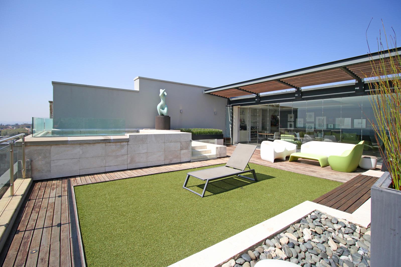 Everything about this luxury, north-facing, 4-bedroom, 2-floor penthouse in the prestigious The Houghton on 12th development is superlative. You get all you would expect for luxury living. The apartment is superbly designed in every respect, with optimum usage of space. High ceilings and full-length windows provide light and space and an unparalleled view of the beautiful, scenic golf course and lake.