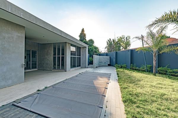 Automated double garage accommodate 2 cars +-6 open bay parking, 2 domestic rooms with bathroom and kitchenette, pool, water feature huge garden.