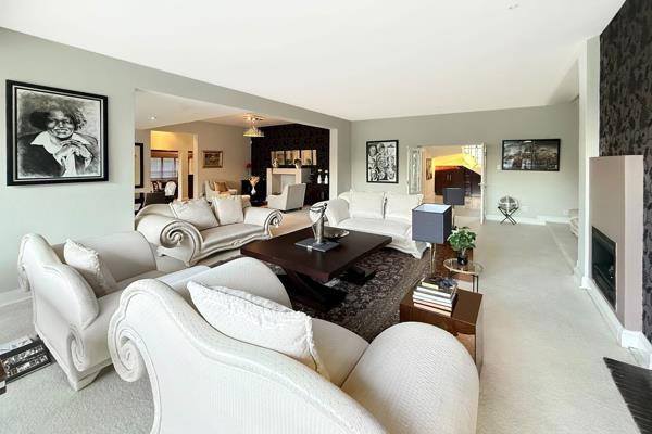 Palatial 5-Bedroom Home plus 3 Guest Suites in Houghton Estate. Experience luxury living within this palatial and extravagant home. The grand entrance sets the tone for opulence, leading into a formal lounge with a cosy gas fireplace and an elegant dining room that also has its own gas fireplace. Private study.