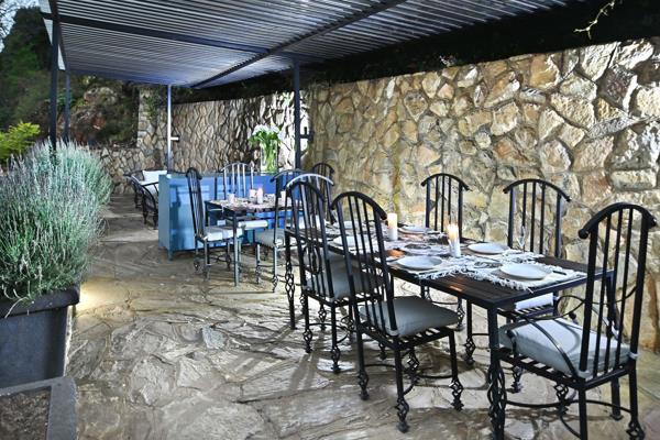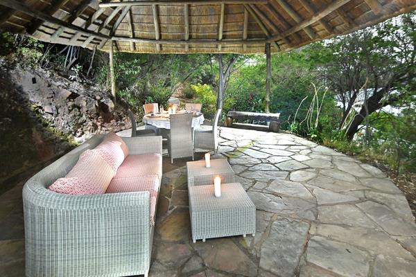 Enjoy stunning northerly vistas of Johannesburg and Sandton from the spacious veranda and the two outdoor dining areasperfect for entertaining or relaxing amid spectacular views. The charming thatch-roofed Lapa provides a tranquil spot to enjoy the landscape.