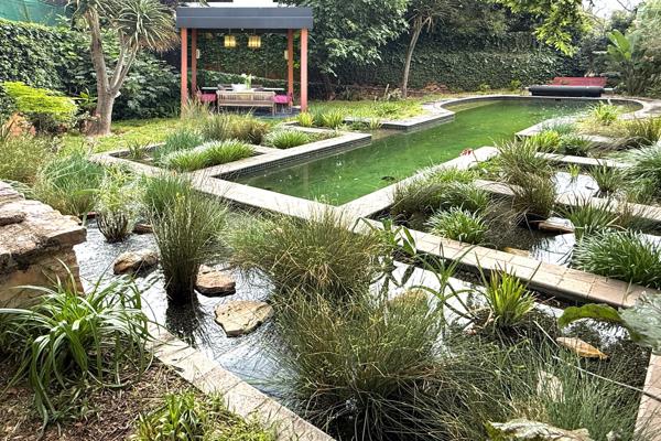 The property boasts a natural eco pool designed by David Roberts, a company awarded for The International Best Natural Public Pool by IOB (Germany), along with two elegant water features. An independent borehole supplies water, complemented by an integrated filtration system and Jojo tanks, ensuring sustainability.