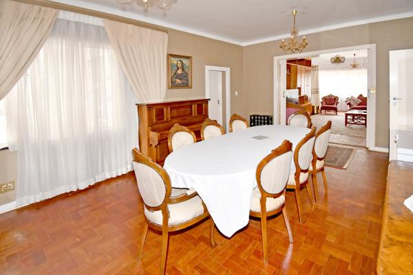 Grand facades with bay windows and stately proportions are displayed in the formal dining room and lounge with built-in fittings and parquet floors. Adjacent to the dining area, the kitchen impresses with a breakfast area. Separate scullery. Fitted study.
