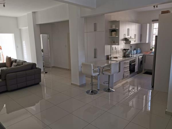 Amazingly ultra modern renovated lock-up-and go apartment. 108 Square meters. Two bedrooms, one bathroom. Welcoming open plan entrance, kitchen, dining area, lounge enclosed balcony. Floors boasting of carpets and tiles. One garage, one staff quarters. Visitors parking, communal gardens, pet friendly complex. Close to all amenities, GaubusTrain, schools, hospital, clinics and freeways. Don''t miss out on this lovely home.