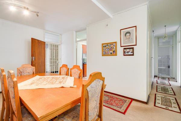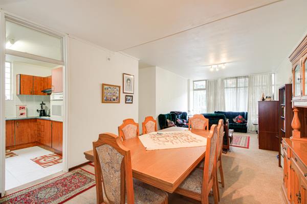 This two-bedroom apartment offers a combined living and dining area, an updated kitchen, and two generously sized bedrooms. Additional features include a storage closet and two bathrooms, one with a shower and one with a bathtub. The apartment features an enclosed balcony with sliding windows for ventilation, a north-facing aspect, basement parking, and a private storage unit. A communal garden is available, and the property enjoys proximity to Killarney Mall, access to the Gautrain bus route, and 24-hour security.