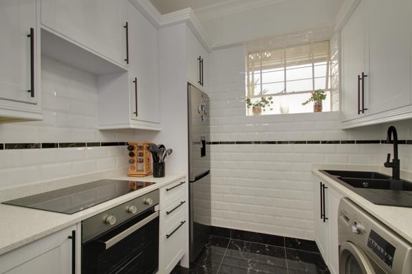 A light and bright two bedroom apartment in a pet friendly building. The kitchen is classic timeless black and white and brand new. The main bedroom has an en-suite bathroom. The 2nd bathroom is also renovated in classic black and white. Study. A sunny enclosed balcony. Parquet floors. 2 Parking bays, and a store room. Centrally located across from Killarney Park.