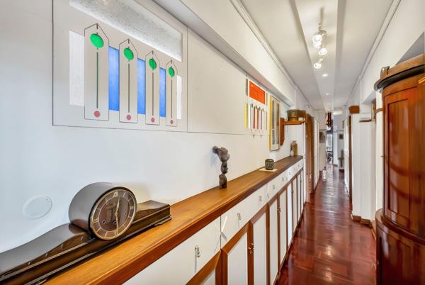 The main bedroom is pure indulgencecomplete with a luxurious en-suite, sliding shutters for privacy, and a walk-in dresser.. A second en suite bedroom, in addition a versatile third bedroom or home office that features a clever foldaway bed and dual-functioning side tables for effortless transformation. Fabulous cabinetry ideal for a library, storage of architectural plans, or files. A show-stopping bar with display shelving swivels into a stylish work-from-home station, while the lounge with bio fireplace and secret bar connects beautifully to a formal dining roomideal for hosting with flair. The designer kitchen ticks every box: gas hob, pantry, double and veggie sinks, paint-flushing sink for creatives, and whimsical hidden Harry Potter cupboards. Added extras include an inverter, boiler system, and water storageensuring comfort in all seasons. Warm parquet flooring flows throughout, adding texture and charm. Two parking bays and staff accommodation complete the picture. Once the home of the distinguished Herbert Prins, this home is a rare fusion of history, craftsmanship, and modern innovation, truly one of a kind.
