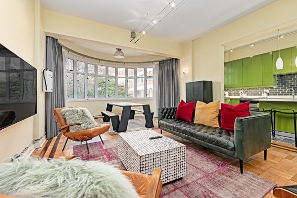 Room 2: Huge spacious room with parquet floor huge aluminium windows, curtains, double glass doors and couches
