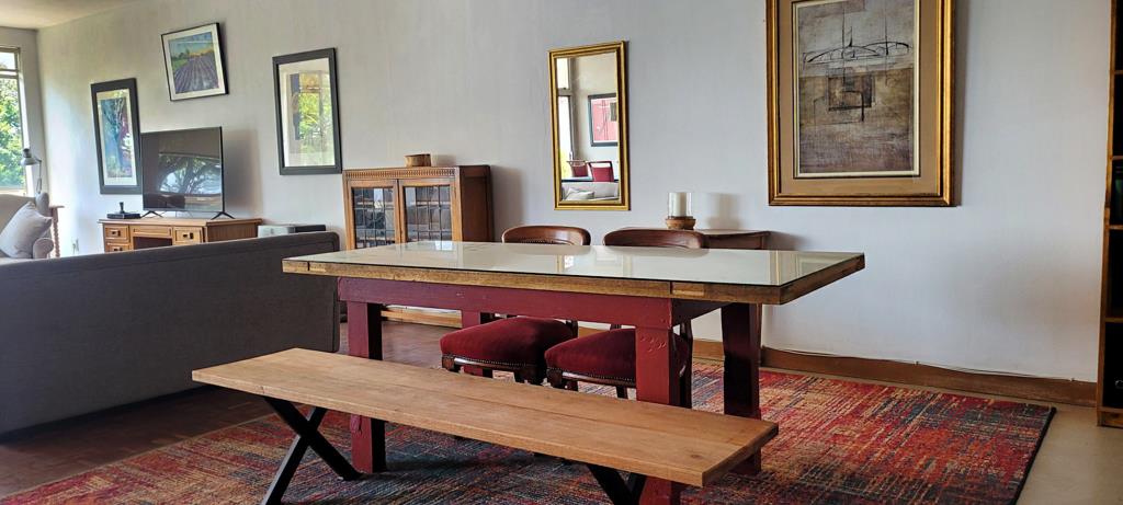 The bedrooms are spacious with ample built-in cupboards, and the main bedroom has a dressing room and an en-suite bathroom.