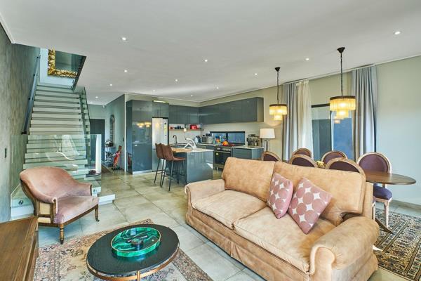 Urban living at its best! This designer, three bedroom, 3.5 bathroom contemporary cluster home boasts a staff quarter and private garden (enough space for a plunge pool). Ultra chic kitchen, downstairs guest bathroom, large open-plan living areas lead to the undercover patio with built-in barbeque and private garden. Upstairs offers 3 good size bedrooms with loads of cupboard space, balconies and all have en-suite designer bathrooms. The double auto garage has direct access into the home and enough visitors parking is available. Kindly call for an exclusive viewing.
