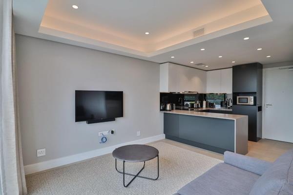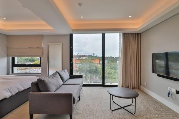 The open-plan bedroom and lounge feature hardwood floors. It is finished off with down lighting and fitted automatic temperature-controlled air conditioning.