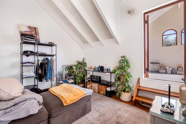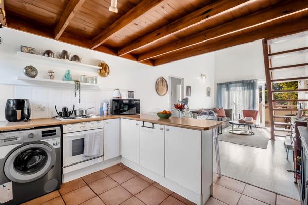 Light and bright open plan kitchen & living areas lead out to an open balcony. Sunny north-facing main bedroom with access directly to the balcony plus 2nd well sized bedroom, and renovated full bathroom with shower & bath tub. Upstairs loft offers a large additional space currently used as a 3rd bedroom. This space is also good as a home office, an additional living area, whatever your heart desires. From the loft one steps out to a large rooftop terrace undercover and open with great views, yet another space for year round true South African style entertainment!