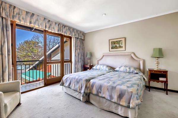 Exclusive small complex located close to the popular up-graded James & Ethel Gray Park with its Padel and restaurant. The complex offers excellent double manned security, borehole water, and a secure community lifestyle for the fortunate few. Secure, quiet, 3 bedroom town-house conveniently located in leafy Melrose North. Main bedroom downstairs!