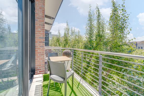 As you enter, you are welcomed by the double volume space boasting a well fitted kitchen with hidden appliances (Cesar stone finishes) open plan to the dining and living room areas, leading in turn to a private balcony. A loft area shares this space - perfect for a study - which opens onto an entertainment patio with a gas braai, ideal for kicking back and relaxing after another successful business day.