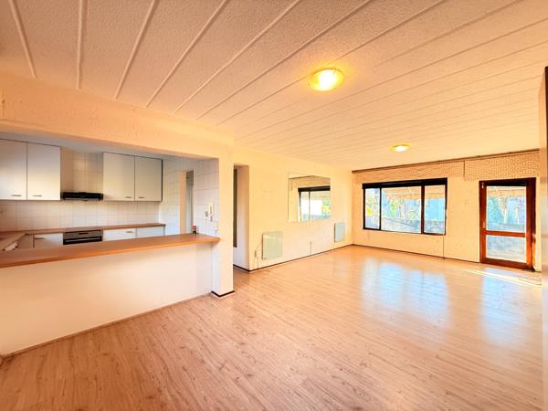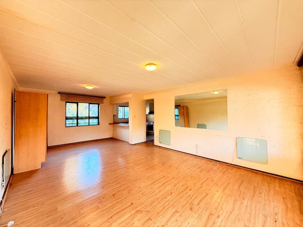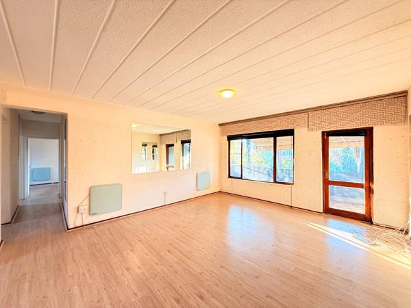 Spacious open-plan lounge andamp dining area with warm wooden flooring, abundant natural light, and access to a private balcony with a refreshing breeze and great privacy.
