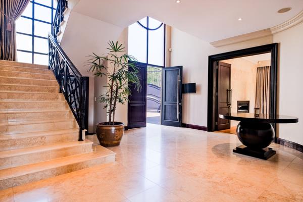 In the prestigious enclave of Melrose Estate stands a residence that embodies architectural mastery and refined living. Designed by Stephen Pellerade, this home is not simply a property, but a statement of elegance, exclusivity, and lifestyle. For those who value distinction, it presents a rare opportunity to secure a place in Johannesburgs most coveted address. From the moment you step through the gates of this intimate three-unit estate, the sense of privacy and prestige is unmistakable. The double-volume entrance hall, lined with imported Italian marble floors, makes a dramatic first impression. A sweeping staircase rises gracefully, hinting at the tranquil bedroom suites above, while the ground floor invites you into spaces that balance grandeur with comfort. Every detail of the home has been crafted to create both effortless living and sophisticated entertaining.