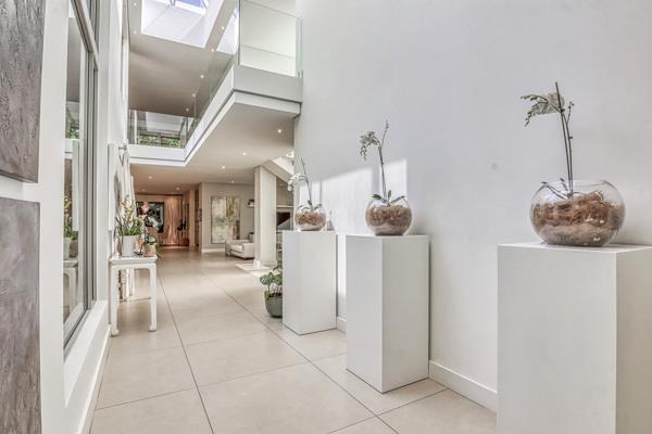 The double volume entrance hall sets a tone of grandeur, flooded with natural light from elegant skylights.