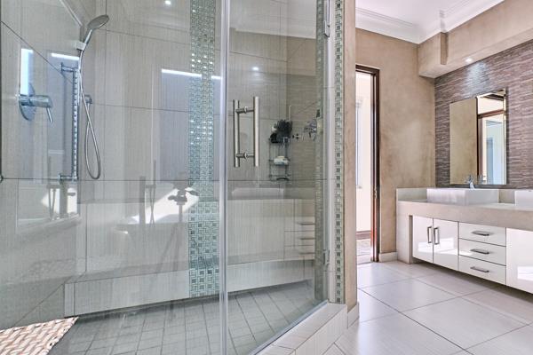 A stylish contemporary cluster designed to maximize ease of living - clean lines, open spaces! A world of light, volume, and effortless sophistication. The living areas are generous and versatile, including a lounge and a TV room. The indoor-outdoor flow leads to a covered patio fitted with a built-in braai, overlooking a beautiful swimming pool set within a perfectly manicured garden. The kitchen is both stylish and practical, featuring a separate scullery,