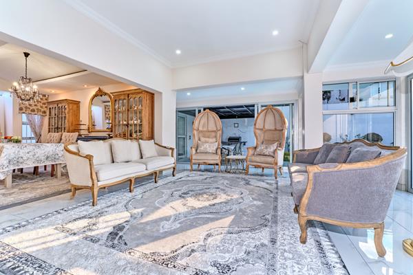 From the welcoming double volume entrance, to the bright and airy living areas- this home is immaculate. Sunlight flows well between its spaces. The gourmet kitchen offers a gas burner stove, fitted cabinets and space for appliances. The north-facing lounge opens through expansive stacking doors to a panoramic view of lush, landscaped garden bringing the outdoors in with elegance and ease. Enjoy year-round entertaining in the all-weather patio, complete with built-in braai. The lounge and dining room offers a wonderful fire place. These spaces flow seamlessly overlooking the garden and sparkling pool.