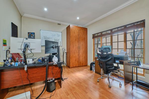 The double automated garage with automated doors provides ample parking and secure storage. Inside, the entrance hall leads to an open plan lounge with an inviting fireplace, dining room, and kitchen ideal for family living and entertaining. The main bedroom is an on-suite retreat with beautiful wooden doors that lead directly to the pool area, creating a seamless indoor-outdoor living experience. Laminated flooring in the bedrooms provides a warm and cosy feel, while tiling throughout the rest of the house, including the outside room, ensures easy maintenance and durability.