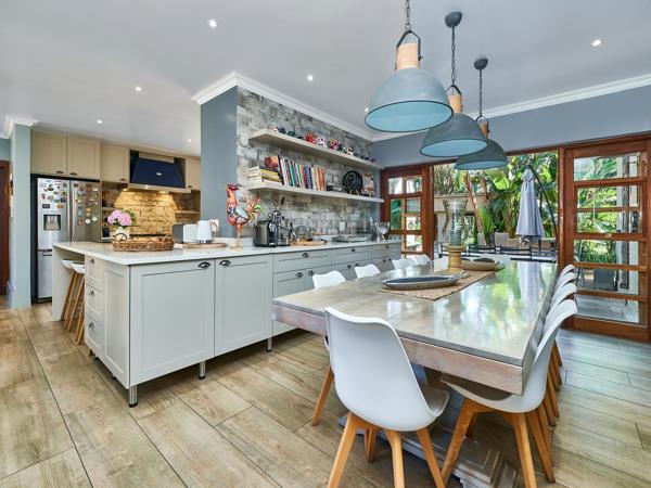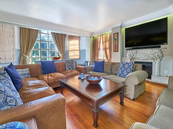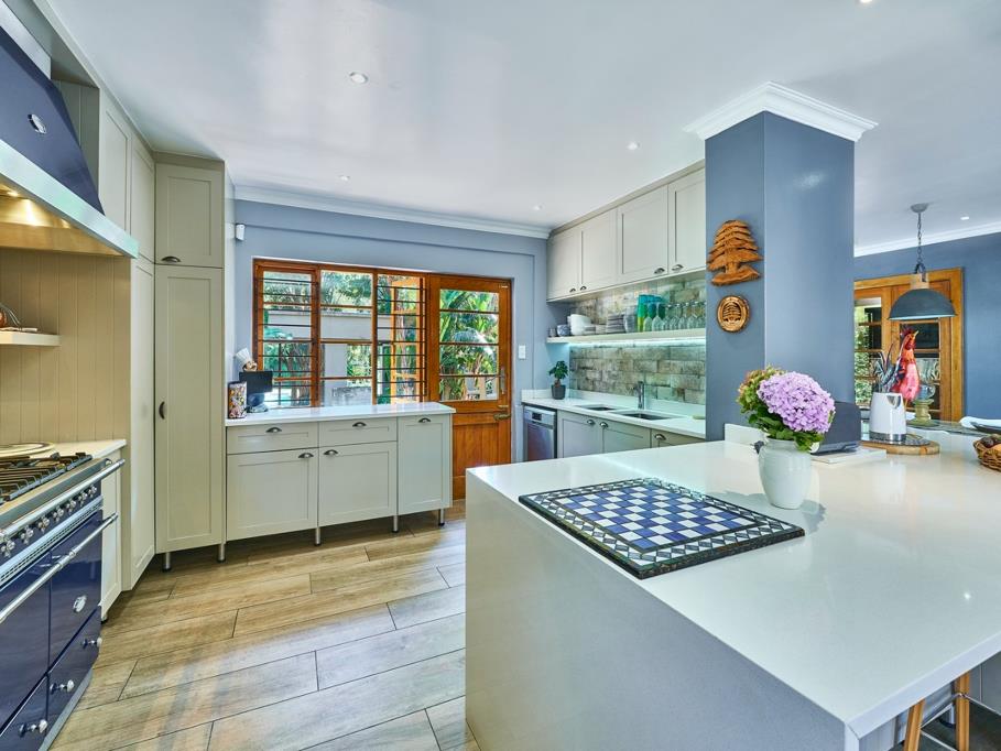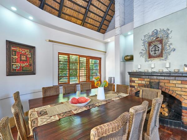 Whip up your favourite gourmet meal for your family or entertain on a grand scale, the Corden Bleu 10-seater eat-in kitchen with Caesarstone counter tops, gas oven/hobs, centre island and walk-in wine cellar will not disappoint. 3 Well-appointed reception rooms lead off kitchen seamlessly flow onto expansive covered patio with dining table, built-in bar and braai. Patio overlooks sparkling pool, beautifully landscaped garden, koi pond plus soccer pitch to boot.