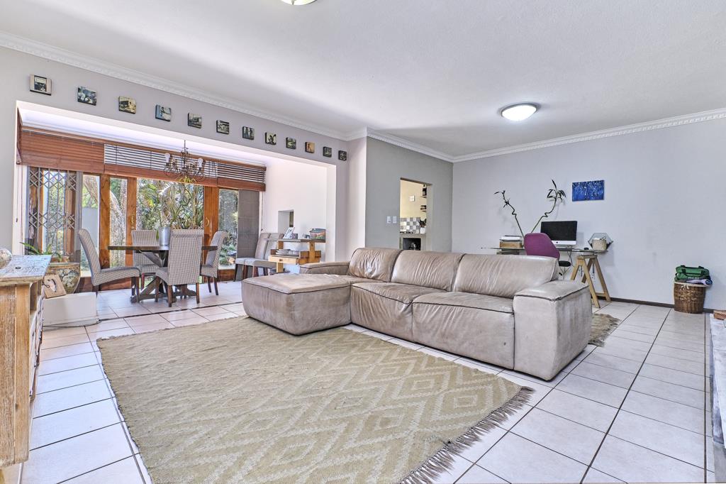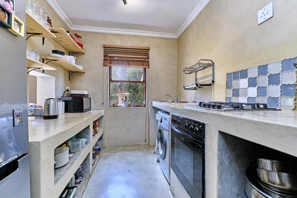 Open plan entrance with lounge and dining area, enclosed simple kitchen. The apartment features 2 spacious bedrooms with built in cupboards and 2 bathrooms, with the main bedroom having an en-suite bathroom. The dining area leads out to a lush indigenous landscaped garden.