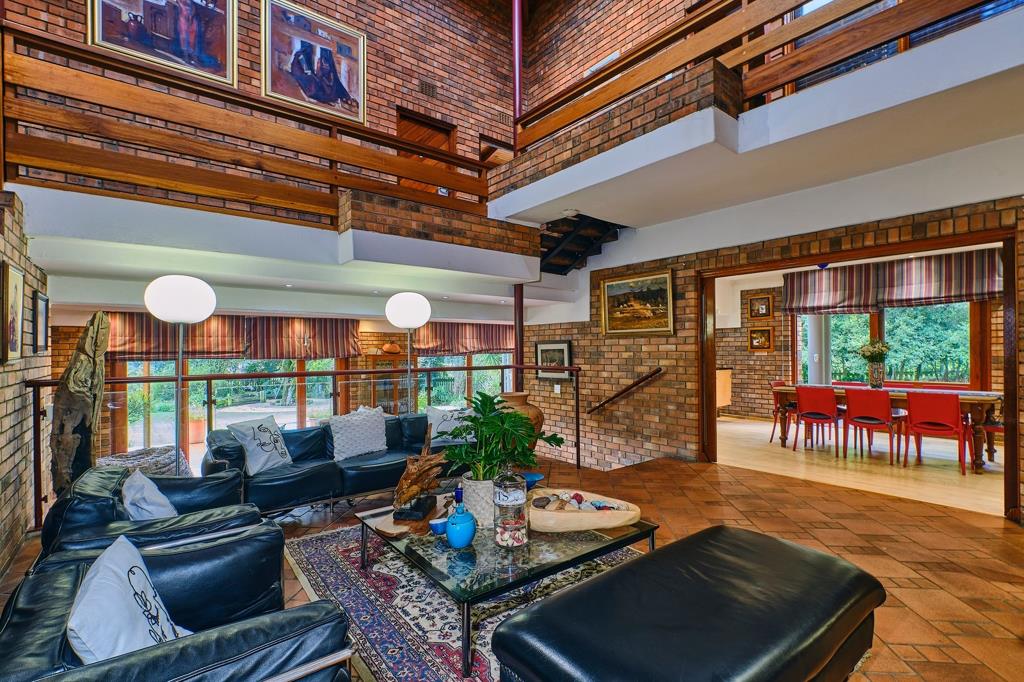 From R3.5m. This exceptional lodge style, treehouse inspired, double-storey home, designed by architect Vassos Lanitis in October 1986, showcases a seamless blend of rustic charm and modern luxury with its striking interior and exterior face brick construction. Boasting original railway sleeper stairs, the home features 4 bedrooms and 3.5 bathrooms, with the main en-suite offering breathtaking views of the garden and beyond. This private retreat includes a walk-in cupboard and an infrared sauna room that leads onto a secluded balcony.