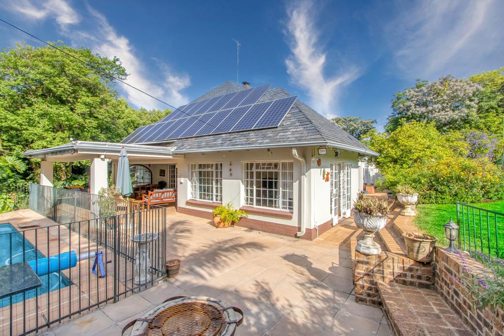 An Idyllic Country Escape in the Heart of Oaklands. Tucked away in the prestigious, family-friendly enclave of Oaklands, this enchanting single-level residence evokes the charm and tranquility of an English country home all set on an expansive 2375m of prime, north-facing real estate. Down a long, private panhandle driveway, the home reveals itself embraced by lush, established gardens and green rolling lawns, perfect for children and furry friends to roam freely. The front entrance is warmly welcomed by a calming water feature a tranquil koi pond that sets the tone for the peaceful elegance that follows. The garden is a true sanctuary. Beyond the beautifully landscaped grounds, you will discover an aviary lovingly stocked with birds whose gentle calls bring natures melody to life. A built-in trampoline is cleverly integrated into the lawn a delight for children and families alike. At the heart of this outdoor haven lies the heated swimming pool, flanked by a bubbling Jacuzzi and both an open and covered entertainment patio. The patio is fitted with built-in braais and built-in seating, ideal for fire pit-style gatherings and relaxed weekend entertaining. This sun-filled, north-facing outdoor arena offers seamless indoor-outdoor living perfect for grand-scale entertaining or peaceful afternoons under the trees. Charming architectural details include a pitched SLATE roof, cottage-pane windows and doors, and an elegant open-plan entrance hall adorned with a sparkling chandelier. To the right of the entrance is a bright, north-facing family lounge or games room with easy access to the garden and pool. To the left, a gracious formal lounge flows into the dining room, adjacent to a stylish, well-equipped kitchen perfect for culinary exploration with a separate scullery tucked discreetly away. The accommodation includes five generously proportioned bedrooms. The sun-drenched, north-facing primary suite is a serene retreat complete with a private en-suite bathroom. Four additional bedrooms share two centrally located bathrooms, offering both comfort and practicality for a growing family. The home radiates warmth and authenticity it has been well-loved and carries an inviting, soulful energy throughout. Additional Features Include: Full solar power system for uninterrupted living. Filtered Borehole-fed water supply servicing both home and garden. Layered security for complete peace of mind. Six-car covered carport plus secure off-street parking for at least six additional vehicles. Two-room en-suite staff accommodation. External laundry, pump room, and workshop.