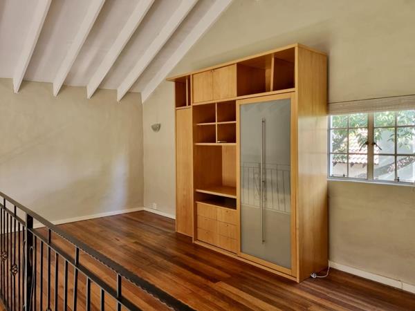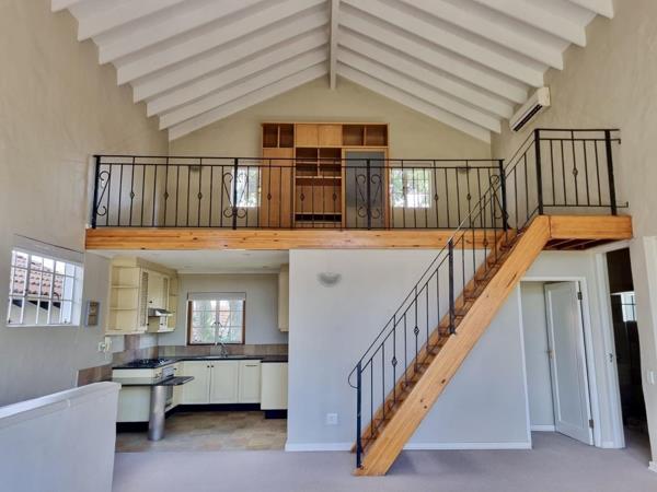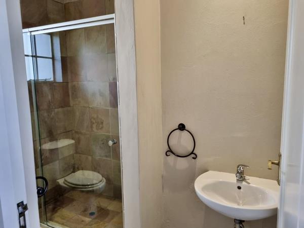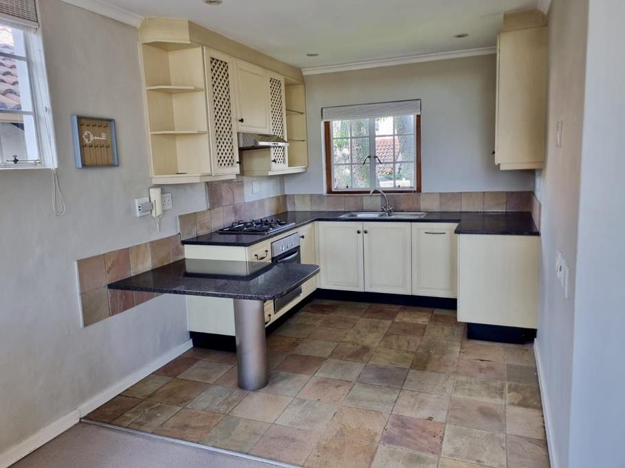 Neat kitchen with lots of counter space, granite tops, a cooker hood and ample built in cupboards. The hob has two gas plates - perfect for loadshedding. Space for fridge and one appliance.