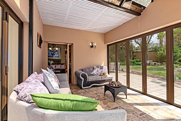 Formal lounge with fire place, dining room, sunroom with stackable doors, slides on to garden, huge garden accommodate +- 20 cars 1 automated double garage, pool, water tank, irrigation, security, alarm, CCTV, burglar bars, electric fencing, JOJO tank. connected to borehole[no filters].and gas geyser.