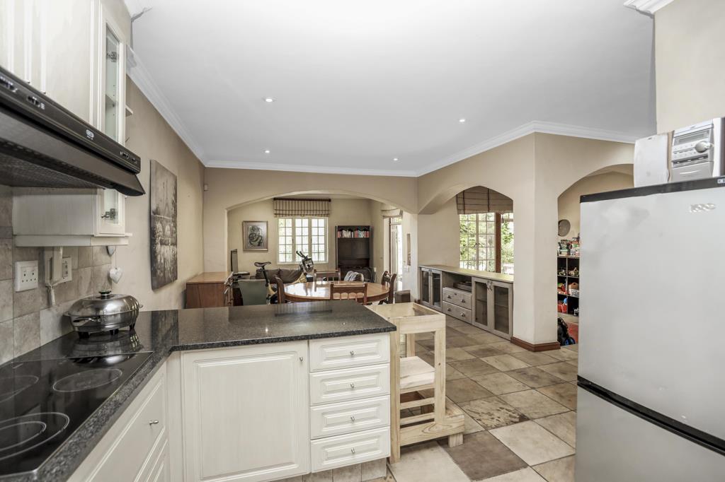 The kitchen is fitted with sleek cabinetry, black granite countertops, a double oven, and a convenient eat-on counter.