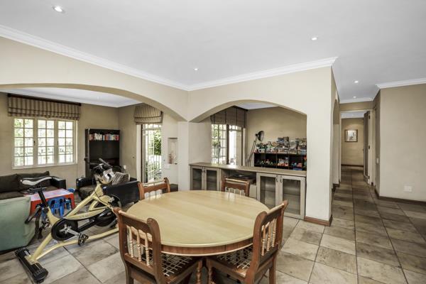 The open-plan living area includes a spacious lounge and dining room and an additional study or playroom.