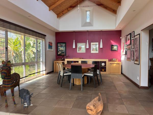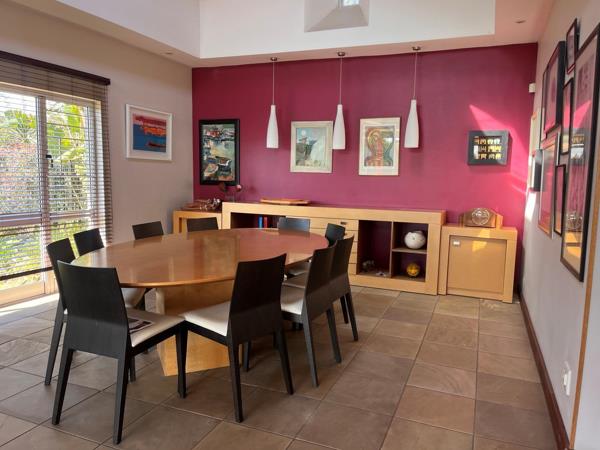Double-volume dining area opening into the landscaped garden
