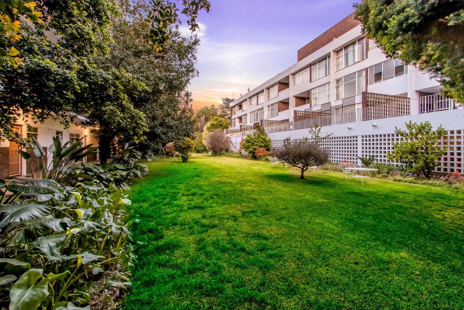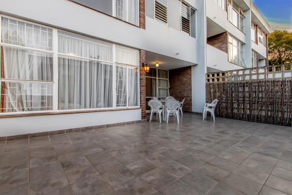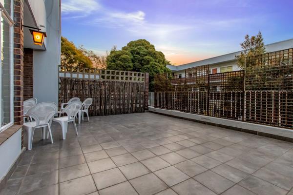 Begin and end your day in the embrace of refined elegance. This charming, spacious, and immaculately presented first-floor apartment, radiating an irresistible allure. Nestled in a prestigious and meticulously maintained complex, surrounded by lush, well-established communal gardens reminiscent of a tranquil Eden, this home offers an unparalleled retreat of peace and beauty. Step inside and discover a stylish minimalist haven, where sun-drenched open-plan living spaces seamlessly connect the graceful lounge and inviting dining areas, flowing effortlessly onto an expansive, private terrace. Here you will enjoy picturesque views of blue skies, treetops and unforgettable South African sunsets, the perfect setting to unwind or entertain. The well-appointed and cleverly designed kitchen stands as a culinary stage, ready to inspire your inner chef. This versatile unit is perfect for renovators, speculators, and investors alike whether you are starting out, scaling up, or winding down, it offers endless possibilities. Bathed in glorious natural light from its coveted north-facing orientation, the apartment radiates a sense of warmth, balance, and sophistication. The serene bedroom sanctuary enchants with timeless parquet flooring, elegant proportions, and abundant floor-to-ceiling cupboards, ensuring stylish yet practical storage. The complimentary bathroom and guest cloakroom are both tastefully finished, with floor-to-ceiling tiles adorning the walls and floors, paired with a vanity and a mirrored medicine/makeup cabinet, creating an atmosphere of understated refinement. Do not miss the opportunity to secure this exquisite slice of paradise. Step inside and experience the epitome of graceful, modern living today.