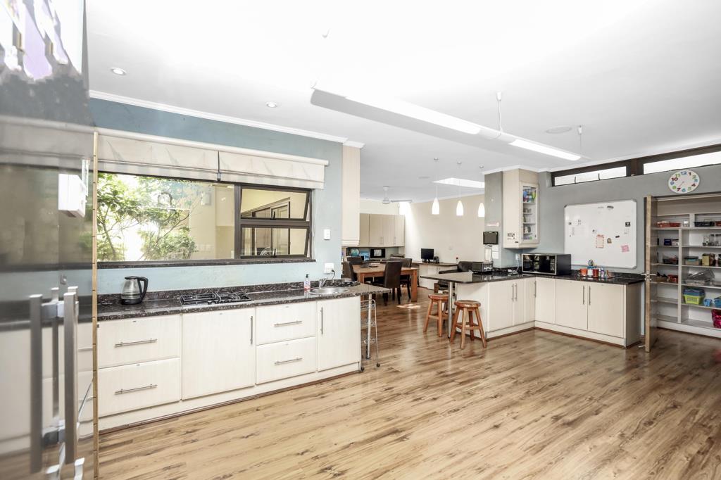 The home is designed for both relaxation and entertainment, featuring a spacious open-plan lounge and dining area, a large, modern kitchen, two dedicated home offices, a playroom, a cottage, an equipped gym overlooking the sparkling pool, and a covered patio with a gas braaiperfect for effortless indoor-outdoor living.