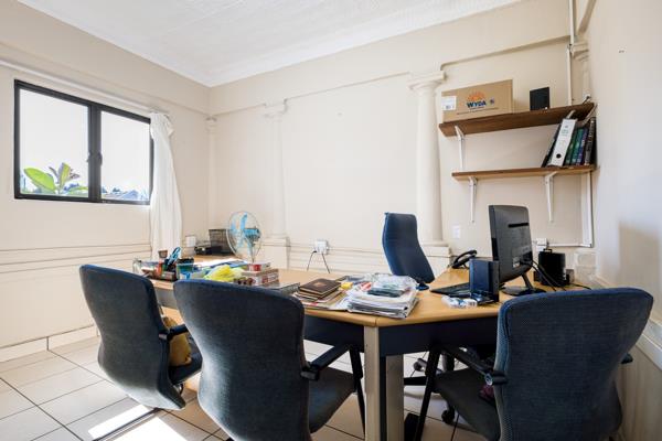 Office space leading into two more rooms ideal as additional offices or a self-contained living area with kitchen potential