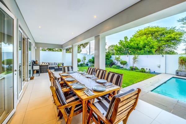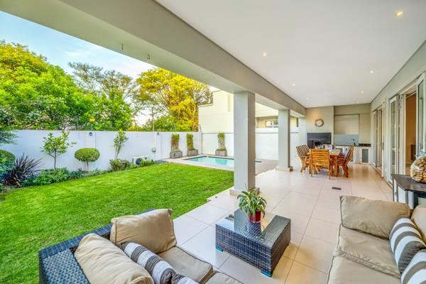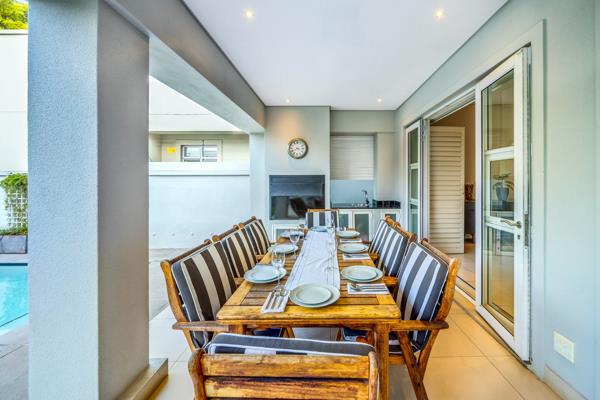 As you enter, the high ceilings create an airy atmosphere, leading you into a spacious open plan lounge where a cozy wood-burning fireplace sets the perfect ambiance. Discover the dining area that seamlessly flows onto a sprawling patio, ideal for entertaining family and friends. A built-in braai with an outdoor prep bowl ensures that alfresco dining is a breeze, all while overlooking a beautifully landscaped, low-maintenance garden and sparkling swimming pool.