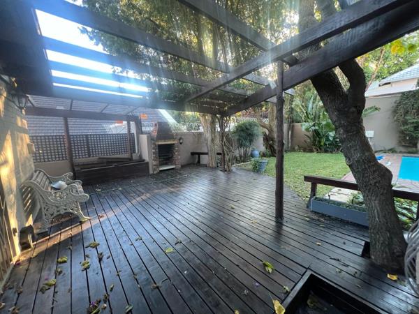 This wonderful home offers feel and Moroccan free flow featuring arches and texture throughout. You are treated to 4 well-sized bedrooms and three bathrooms as well as an outside office/playroom. Reception areas include open-plan dining, and entertainment areas leading out to a covered wooden deck patio, with a built in braai. The open-plan kitchen looks onto the reception rooms and adds to this home''s appeal to a family or entertainer.