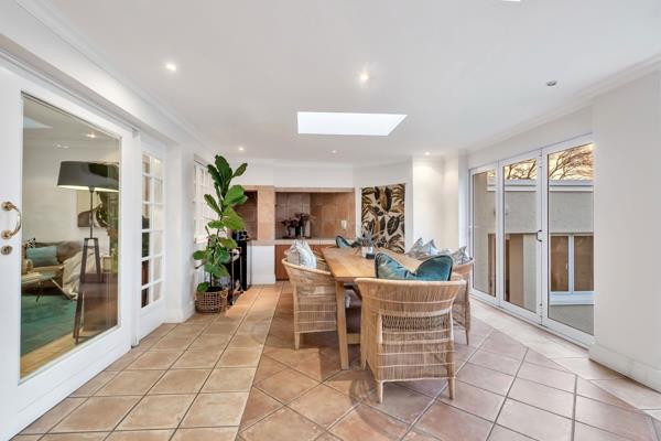 Light filled, well-loved home in ideal location . Utterly charming, this home is for you! The sunlit entrance hall sets the tone for the rest of this light and airy home! The spacious dining room has stacking doors that open to a pond allowing air and light to flow into the living rooms. The spacious lounge expands onto the enclosed patio where the skylights flood the space with light. From this enclosed entertainers patio, French doors open up to the inviting swimming pool and manicured garden. All bedrooms are spacious, with garden views and two are en-suite. The kitchen has ample storage and prep-surfaces making meal prep a breeze. The well-appointed cottage or staff quarters has a private entrance and there is a separate WFH office space. Double automated garage with direct access into the home. This charming home will steal your heart and sell soon! Do not miss this opportunity to own this loved and cared for property.