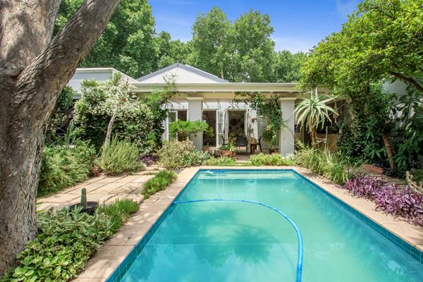 Additional features include a self-contained outside cottage, perfect for guests or a work-from-home studio, a solar inverter system ensuring uninterrupted living, and energy-efficient gas geysers. A garage with direct access into the home provides both security and convenience.