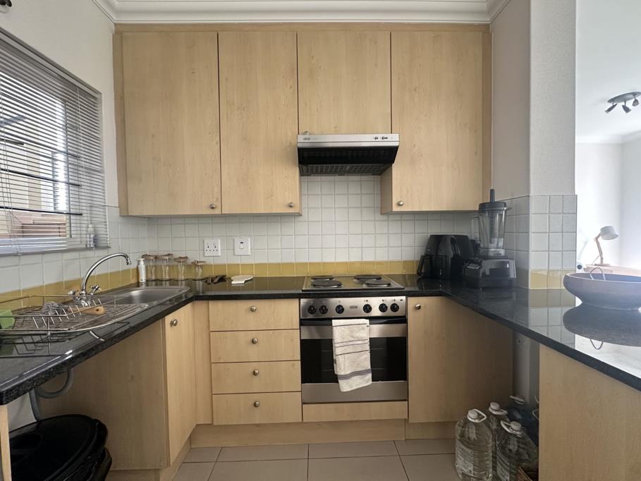 The bright living space flows effortlessly from the kitchen, which has a built-in under counter oven and electric hob.