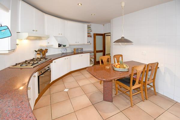 Step inside to spacious living and dining areas, each warmed up by gas heaters perfect for Joburgs crisp evenings. The heart of the home is the delightful eat-in kitchen, featuring curved cabinetry, a gas hob, under-counter oven and plenty of workspace a nostalgic nod to mid-century style blended with everyday functionality.