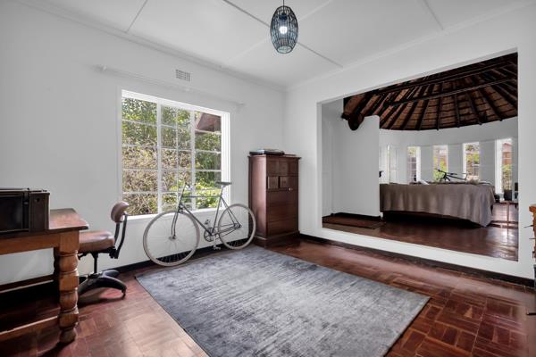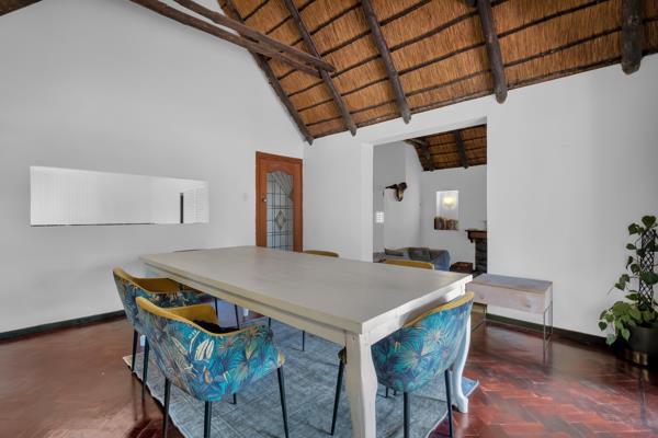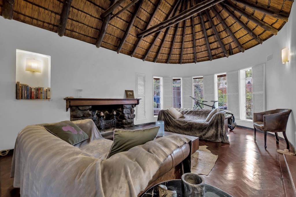 Discover a truly unique residential property for sale in the sought-after suburb of Parktown North, Johannesburg. This charming home, spanning 260.00 sqm on a generous 750.00 sqm erf, immediately captivates with its distinctive thatched roof and striking curved architecture, offering exceptional kerb appeal. Step inside to an inviting open-plan living and dining area, bathed in abundant natural light from multiple windows, creating a warm and welcoming atmosphere. The interior boasts beautiful wooden parquet flooring throughout, enhancing the rustic charm and natural aesthetic of the space, complemented by a cozy fireplace perfect for cooler evenings.