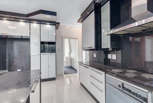 Designed for both style and functionality, this chefs dream kitchen boasts ample stone countertops, a sleek breakfast bar, and high-gloss cabinetry.