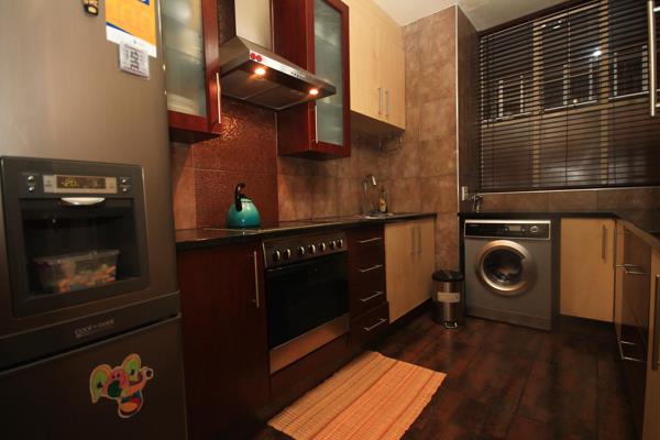 Entrance, open-plan lounge and dining area, renovated kitchen, 2 bedrooms, study, 2 bathrooms (main en-suite), covered patio (with security gates) and parking for 2.
