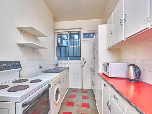 Spacious lounge/dining area where the warmth of the morning sun hits in this north facing apartment. Wake up looking into lush greenery amongst trees this from the airy bedroom with fitted wardrobes. 1 Bedroom and 1 bathroom.