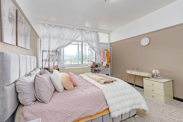 Neat walk in huge spacious room with built in cupboards parquet flooring throughout the unit, open plan lounge and dining room over looking the garden. Kitchen with built in cupboards plumbed for 3 appliances