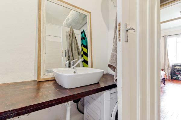 The kitchen features ample wooden cabinetry and space for a fridge, but will need some upgrading by the new owner but has a classic stove that continues to perform reliably. The bathroom includes a shower and basin, with a separate toilet, and theres a dedicated space for a washing machine.