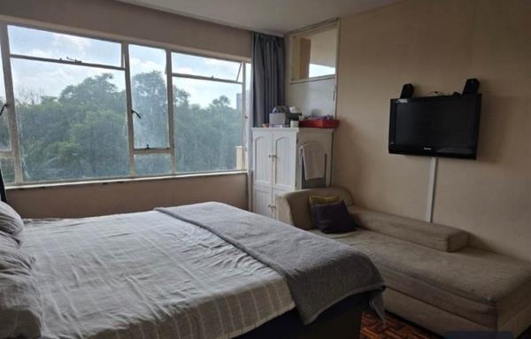 Spacious well maintained 2 bedrooms flat with built-in cupboards wooden flooring, 1 bathroom, living room and dining room, kitchen with gas stove, 1 parking area in a well run safe flat, swimming pool, braai area and well looked after garden, nearby Wits, UJ, Helen Joseph hospital, Milpark Hospital, Sabc offices, very central location.